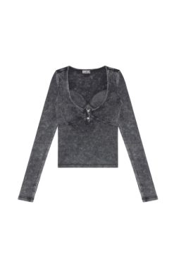 דיזל T Sily P חולצת טריקו לנשים שרוולים קצרים עם צווארון קצר חולצות קז’ואל בהתאמה רגילה