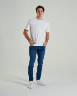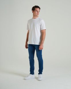 Diesel Tepphar 084qs ג’ינס ג’ינס כחול לגברים במצוקה מותח בגזרה בגזרה גזרה ג’ינס כחול