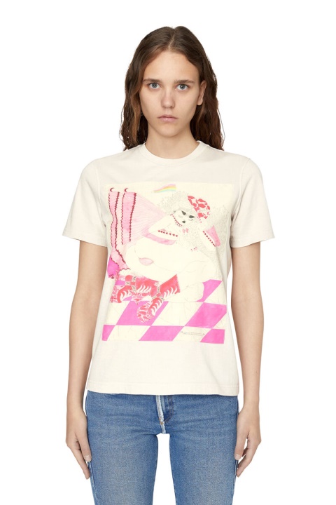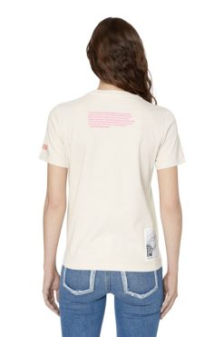 חולצת טריקו בכושר רגיל בשיתוף עם קרן טום אוף פינלנד (ToFF). סגנון השרוול הקצר, צווארון עגול עשוי מכותנה צבועה בפיגמנט, עם פירוט אחד מההדפסים הייחודיים של הקולקציה בגווני ורוד בחזית. עם הציטוט של האסימונים והטלאי הייחודי של הקפסולה בגב.