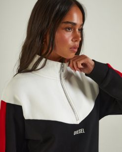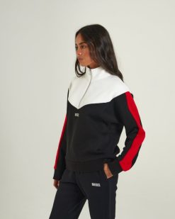 חצי רוכסן צמר קוטב רך במיוחד עם תג ארוג בהר דיזל על החזה השמאלי של הלובש