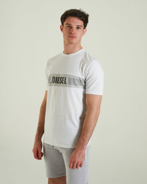 חולצת כותנה רכה לגברים עם מיתוג חזה איקוני של DIESEL בהדפסה מחזיר אור עם פסי שרוולים מחזירי אור, מכפלת מעט מעוקלת ולוגו DIESEL מחזיר אור בצוואר האחורי. הדגם לובש M. מומלץ להקפיד על מידה רגילה. 100% פוליאסטר