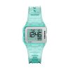 אחריות שעון Clasher 51 מ”מ של דיזל כולל נרתיק העשוי לפחות 50% מפלדת אל חלד ממוחזרת, חוגה בעלת מרקם שחור, תנועת Ana-digi וצמיד נירוסטה עטוף עור המכיל רכיבי עור ששוחזרו מארכיון החומרים של דיזל.