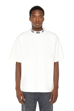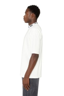 חולצת טריקו רפויה לגברים בנויה מג’רזי כותנה כבדה, בגימור טיפול צבוע בגד. צווארון הדמה הנגלגל ממותג עם לוגו ג’קארד דיזל.