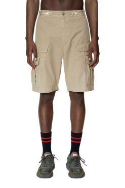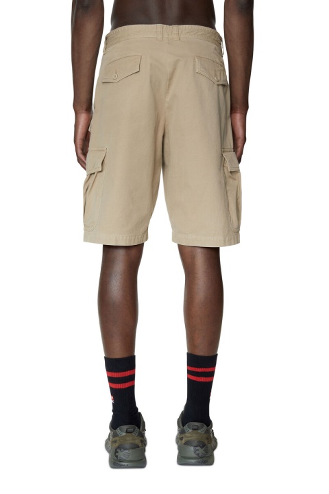 מכנסי קרגו קצרים לגברים בגזרת אריג כותנה כפולה מתוצרת איטלקית. צבועים בבגד למראה שטוף, ומעליהם כיסים חופפים בהשראה צבאית. גימור עם שרוכי שרוך בכפתור במותניים ולוגו סגלגל רקום ‘D’ מאחור.