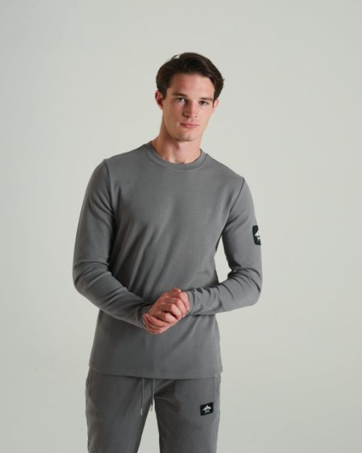 טי שרוול ארוך מבד כותנה רך במיוחד, נעים ונמתח עם ארוג ממותג חיצוני על השרוול. מוט מתכת ממותג כסף בפתח הכיס.