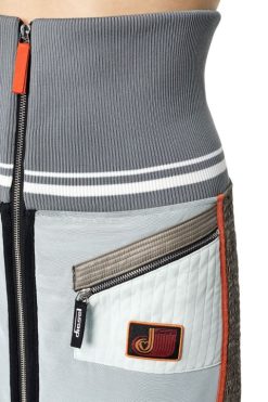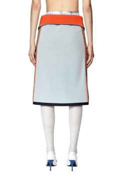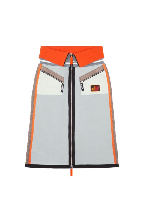 החצאית הספורטיבית עם בלוק צבעוני היא חלק מקולקציית המסלול של אביב 22′. חתוך מרשת כוח דו-שכבתית איטלקית לאורך מידי, יש לו מותניים מצולעים רחבים ורוכסן דו-כיווני ליצירת שסע. רצועות ניילון מעוטרות וסרטים סרוגים מעט את השניים. מפורט עם תיקון לוגו אקארד.