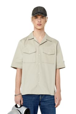 חולצת באולינג רפויה לגברים, עשויה אריג כותנה אורגנית כפולה. כולל שני כיסי דש מכופתרים, הוא כולל לוגו מקסי תעשיית דיזל מודפס על הגב.