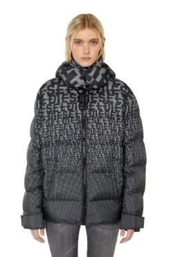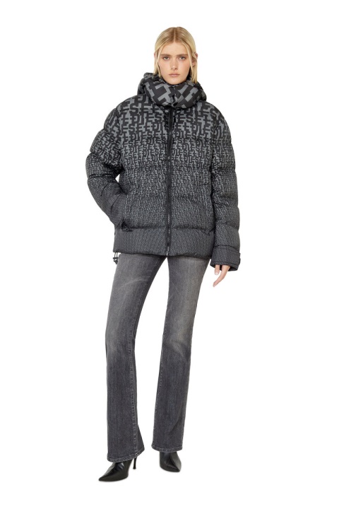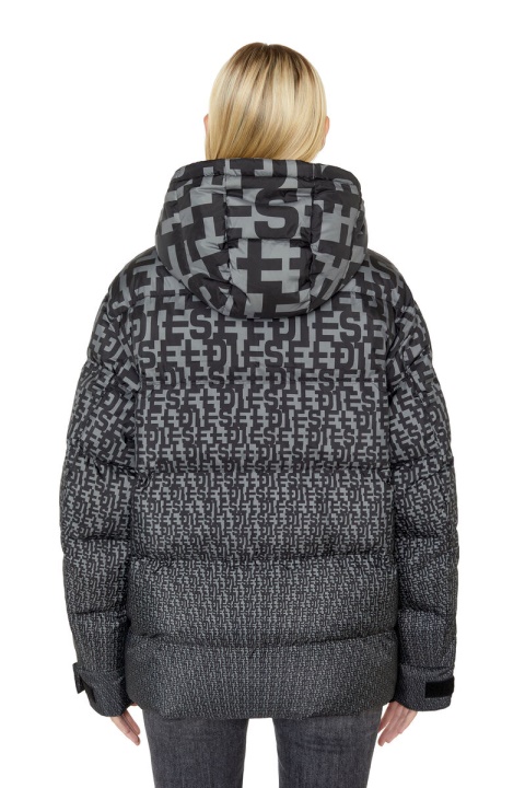 מבודד עם ריפוד המחקה למטה, ז’קט נפוח זה נחתך ממעטפת מרופד המודפסת על פני הכל עם הכינוי של דיזל, הלוגו יוצר ד גרפי שמתכווץ לכיוון המכפלת. ניתן לנתק את מכסה המנוע בצוואר המשפך.