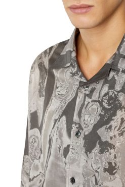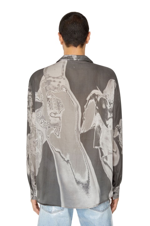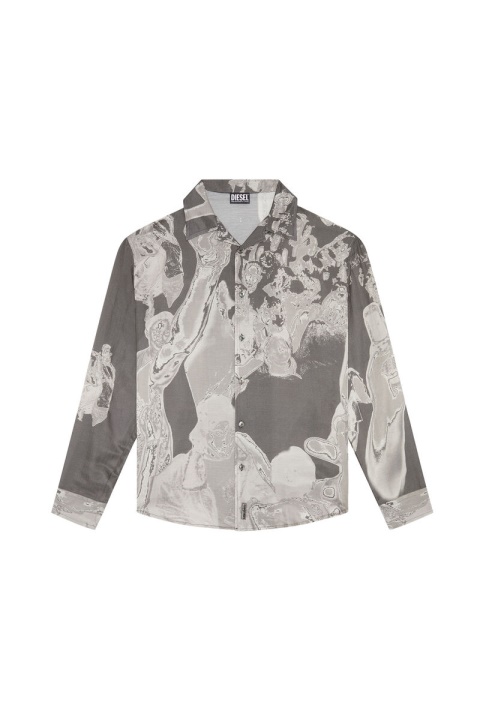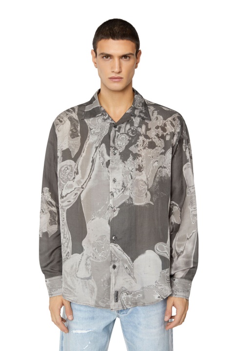 חולצת גברים זו מתהדרת בצללית באולינג עם שרוולים ארוכים, גזורה ממוסלין מכותנה משי. מודפס עם סצנת מסיבה כולל שנלכדה אירוע דיזל, סגנון זה הוא חלק מקולקציית FW22 Runway Show.