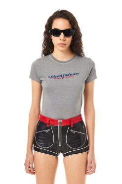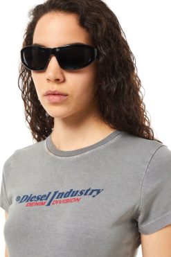 חולצת טריקו גזרה לגזרה דקיקה מכותנה ג’רזי, היא צבועה בפיגמנט וממותגת עם לוגו של חטיבת ה-Disel Industry Denim בהדפסה נפוח.