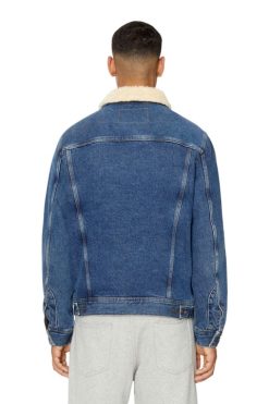 ז’קט משאית גברים בכושר רגיל. סגנון חורפי, מבודד עם בטנת טדי אקרו רכה הנמשכת עד לצווארון. ג’ינס פיקס זה עשוי מכותנה אורגנית וכביסה כחולה בינונית המשלבת תוף שוחק וטיפולי אוזון.