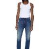 סגנון מחודד מעוצב ב-JoggJeans לנוחות מירבית. הרגל המעוצבת מצטמצמת לקרסול, וחגורת המותן כולל שרוך. כביסה כחולה בינונית זו כוללת גימור צללי ייחודי, מועשר באפקטים של לכלוך ושם בעבודת יד למראה ומראה וינטג’. הג’ינס עבר כביסה באיטליה.