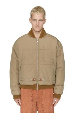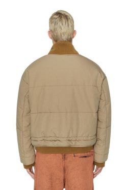 ז’קט חורף לגברים עשוי אריג בשילוב כותנה עם תחושה רכה של עור אפרסק וגימור דוחה מים. מעוצב בצללית מפציץ, ליצירה זו יש התאמה רגילה וגזרות צלעות שמנמנות היוצרות אפקט שכבה בחפתים ובשוליים.