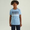 מנדף רטרו לילד. לוח צבעוני פס עם לוגו ותג ארוג