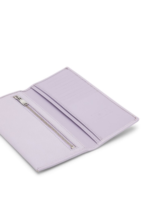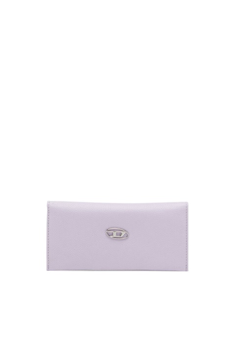 ארנק קונטיננטלי לנשים עשוי מעור מגורען, מעוטר בלוח מתכת את הלוגו הסגלגל ד.