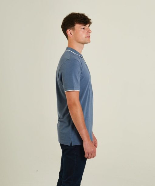 חולצת פולו מכותנה לגברים עם צווארון פוליאסטר ושרוולים מצולעים. קצה ניגודיות בצווארון וברצועה, עם ניגודיות בתוך כיס קדמי בעל 3 כפתורים. לוגו גומי מוגבה בחזה השמאלי.