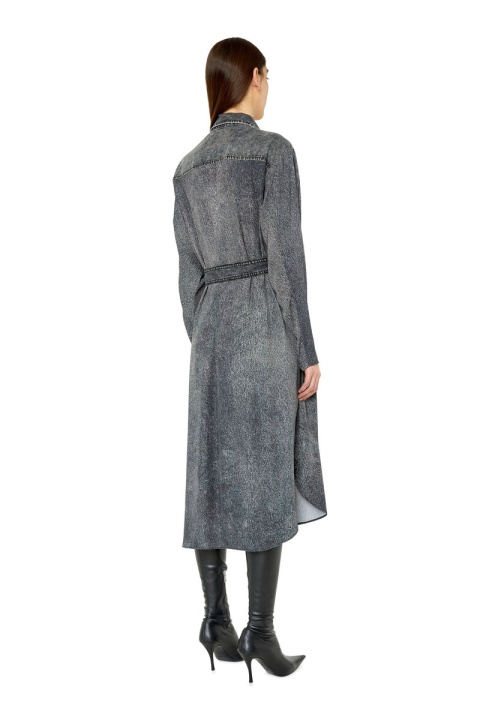 גזרה מוויסקוזה ECOVERO עם הדפסה טרמפ לאיל, שמלת מידי חגורה זו קוראת ג’ינס אפור לעין, אלא שהיא מרגישה רכה ונוזלת. הצללית הרפויה דמוית החולצה ארוכה יותר מאחור ומועשרת בפרטי ג’ינס דיזל אותנטיים.