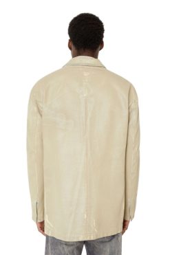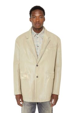 בצללית קופסתית עם חזה יחיד, בלייזר שני כפתורים לגברים זה כולל גימור מצופה ומיתוג ‘ד’ עדין על דש הכיס השמאלי. שטיפת ג’ינס לבנה זו מיוצרת כולה באיטליה. הבד הכחול-קרח שטוף באבן, מצופה ומודפס ביד בגוונים גוונים. ציפוי סופי שקוף מעניק לסגנון גימור מבריק.
