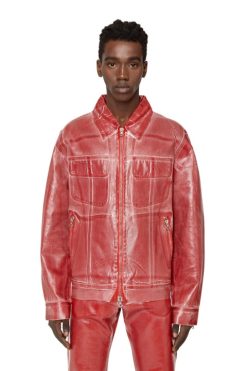 FW Runway Show Collection ’22. בצללית משאית מעודכנת, ז’קט מצופה גברים זה התאמה רגילה ונסגר עם רוכסנים בחזית ובחפתים. צבעוני פיקס ג’ינס זה מאופיין בטכניקות בלעדיות היוצרות את אפקט ה”פילם” המבריק, כולל טיפולי חום וביסה מיוחדת לרכות ונוחות.
