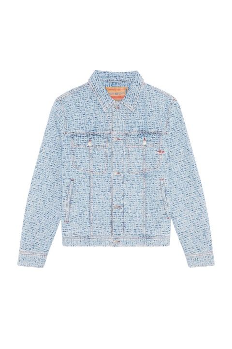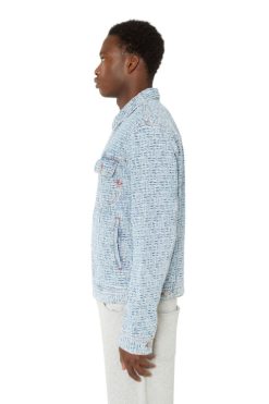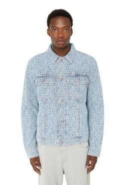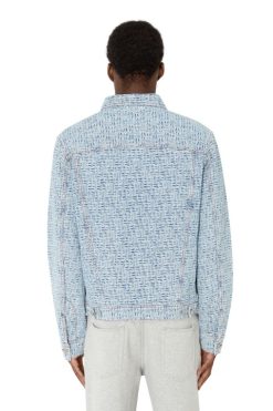 ז’קט משאית גברים בהתאמה רגילה. מאופיין במוטיב מונוגרמה אקארדיד, המראה של הג’ינס התכלת הזה מוגדר על שטיפת אבן אוטיפולי ניבול חלופי.