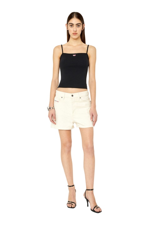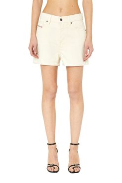 מכנסי חמישה כיסים קצרים לנשים עם גזרה נינוחה עם מפשעה מעט נשמטת. הם מתגוררים קבוע.