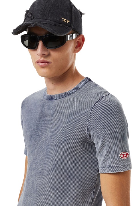 חולצת טריקו בגזרה דקיקה בגזרת כותנה נמתחת, בעלת מרקם מצולע ותיקון לוגו סגלגל ‘D’ בשרוול שמאל.