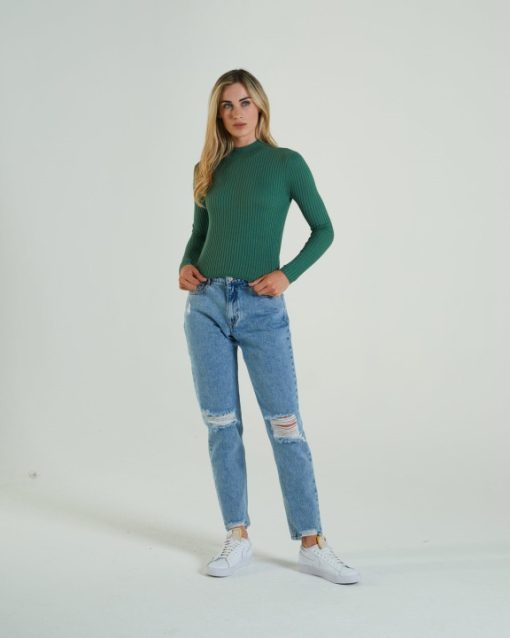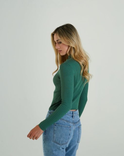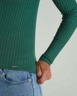 סריגת צלעות הולמת עם צוואר דומה. סיים עם תג מתכת דיזל בשולי.
