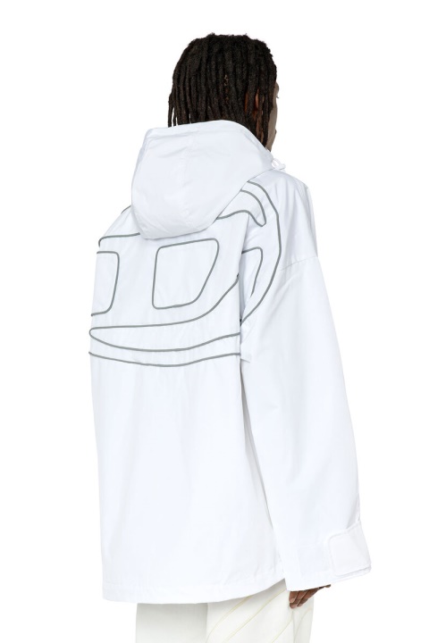 עשוי מניילון דוחה מים ומרופד לנוחות, ז’קט קפוצ’ון לגברים זה כולל לוגו מגה ‘סגלגל D’ המוצמד לרוחב הגב. הצללית חתוכה לרווחה, מפורטת עם רוכסנים וכרטיסיות שרוול שמנמנות.