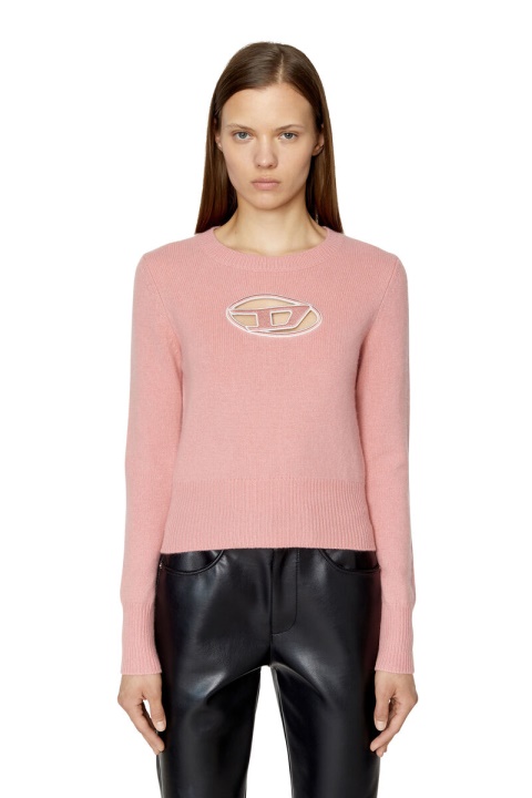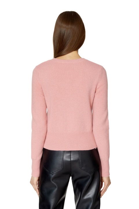 סוודר לנשים זה עשוי מתערובת רכה של קשמיר וצמר ממוחזר, עם שוליים מצולעים. סגנון רגיל, הוא כולל חתך חזה עם לוגו ד סגלגל, רקום בחוט טונאלי.