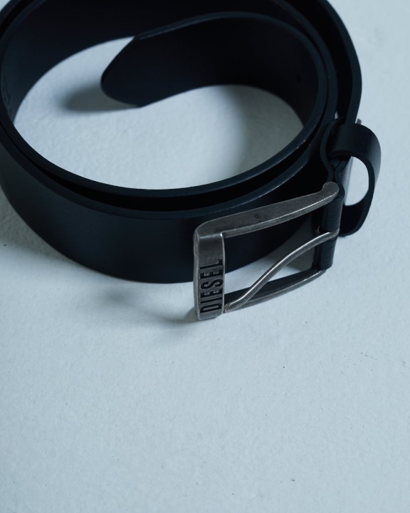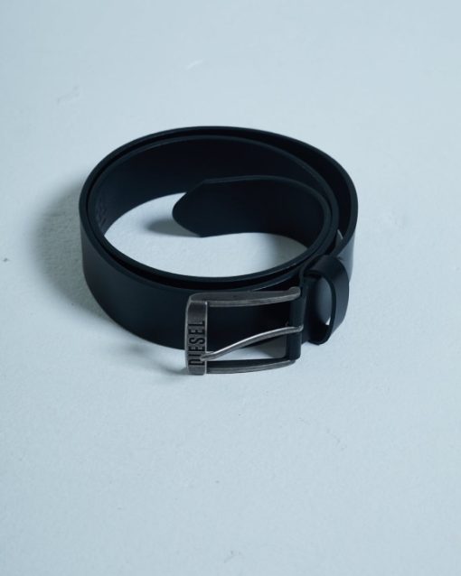 חגורת עור דיזל לגברים עם אבזם לוגו מתכת.