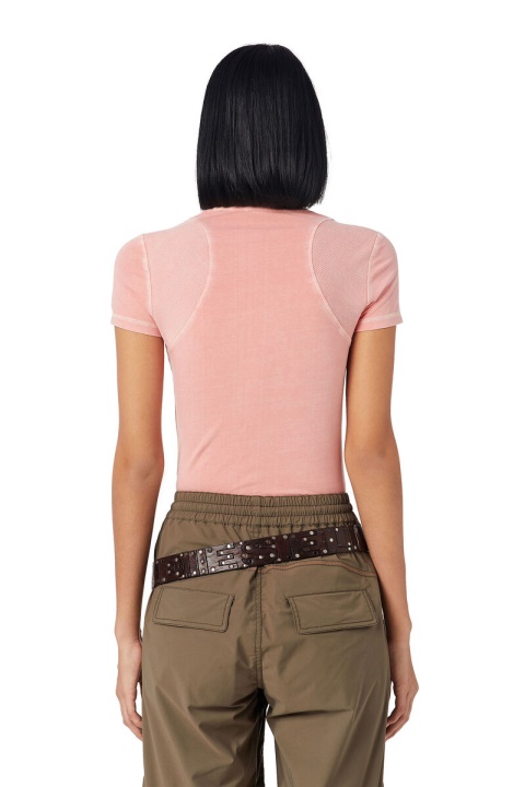 חולצת טריקו זו עשויה מג’רסי כותנה נמתחת אורגנית וצבועה בבגדים באמצעות פיגמנטים מינרליים טבעיים. צללית הגזרה הדקה שלו מודגשת עם תוספות מצולעות למראה ספורטיבי ורקומה בלוגו D סגלגל על השרוול.