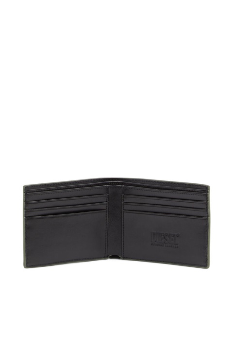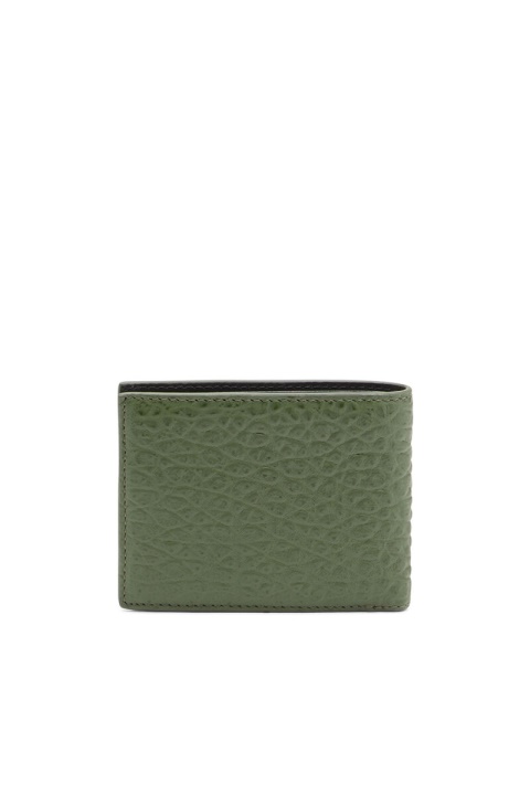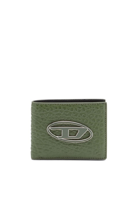 ארנק דו-קיפול לגברים זה מכיל פתקים, כרטיסים וקבלות. הוא עשוי מעור המוטבע במרקם בועות מגורען ומסתיים עם חומרה ‘אובלי ד’ מצופה אמייל.