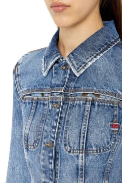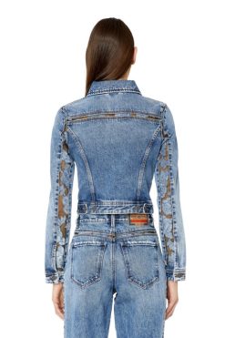 לז’קט ג’ינס לנשים זה יש צללית דקיקה של נהג משא, שחוברת עם תוספות תחרה פרחוניות לאורך התפרים. מפורט על החזה עם רקמת ‘D’ אדומה. עשוי מבד פיקס המשלב כותנה וקנבוס. המבנה המקושר הייחודי כולל תחרת ג’קארד ייחודית עשויה מבדי ג’ינס. זה סיים עם שפם ואפקטים מוצללים למראה חי.