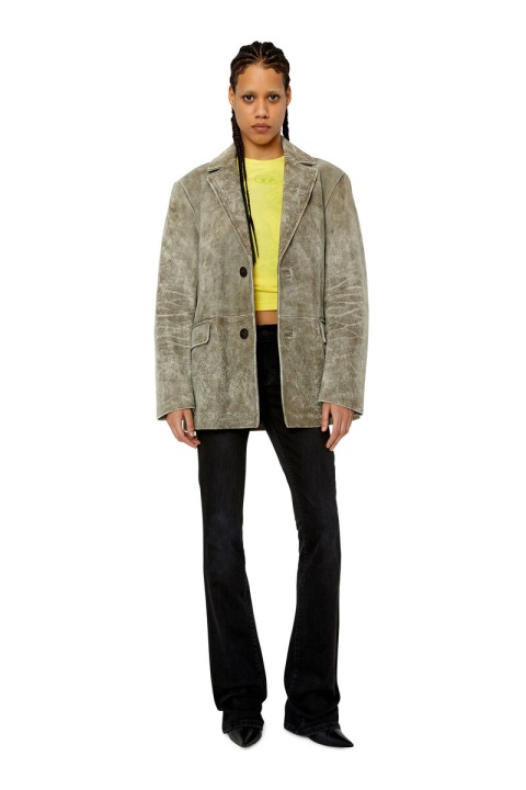 ז’קט חד חזה חד-מיני זה מתהדר בצללית מחויטת עם דשים מחורצים וכיסי דש. מעוצב מעור סדוק עם גימור נפול, הוא פסיכולוגי ידני למראה כחול.