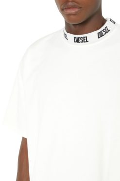 חולצת טריקו רפויה לגברים בנויה מג’רזי כותנה כבדה, בגימור טיפול צבוע בגד. צווארון הדמה הנגלגל ממותג עם לוגו ג’קארד דיזל.