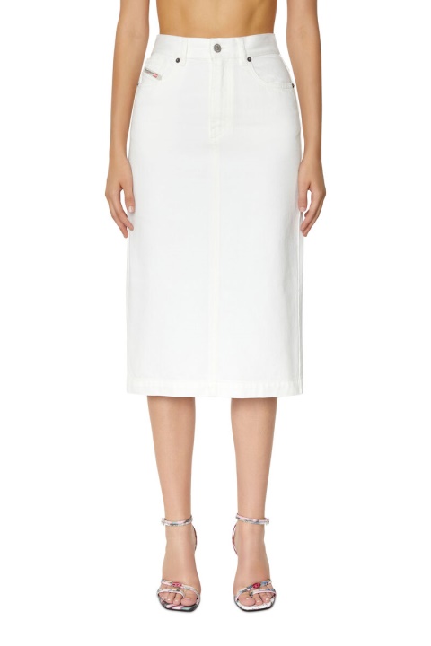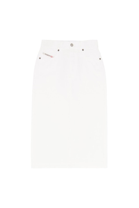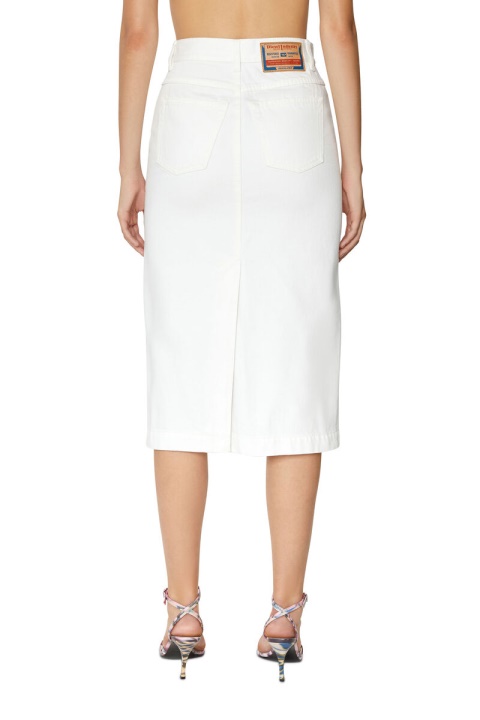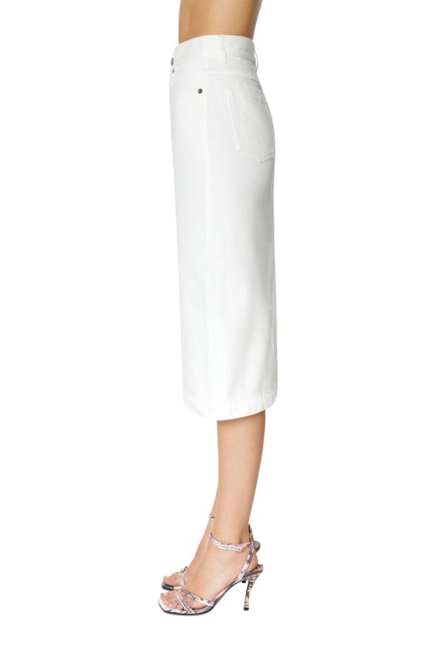 חצאית חמישה כיסים זו גזורה מג’ינס אופטי-לבן, עשויה מכותנה אורגנית. יש לו צללית דקה בעיפרון וחריץ אחורי לתנועה.