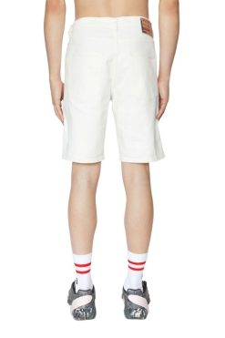 מכנסי ג’ינס קצרים עם חמישה כיסים לגברים חתוכים באורך הברך. לסגנון זה יש מותניים רגילים והתאמה רגילה וישרה לרגליים. עשוי מג’ינס נמתח בכותנה אורגנית עם שטיפה לבנה נקייה ואופטית.