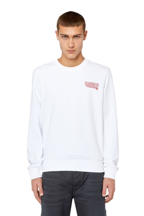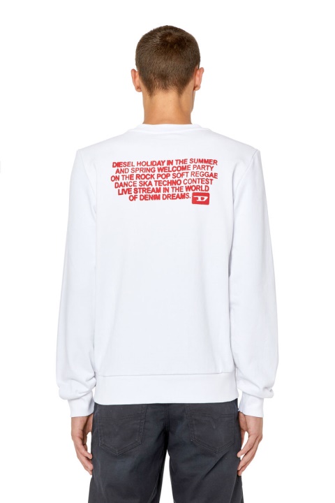 סווטשירט גברים בכושר רגיל זה חתוך מג’רזי כותנה ושוליו עם עיטורים מצולעים. מודפס עם טקסט הדפסה ‘דיזל חג’ לצד סמל ‘ד’ על החזה והגב.