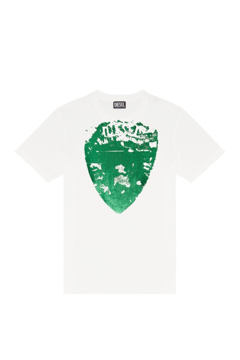 חולצת טריקו לגברים זו מוגדרת על ידי הגרפיקה המתכתית הנפוחה המתארת מגן דיזל הרוס. הוא עשוי מג’רזי כותנה בפרופיל דק עם צווארון.