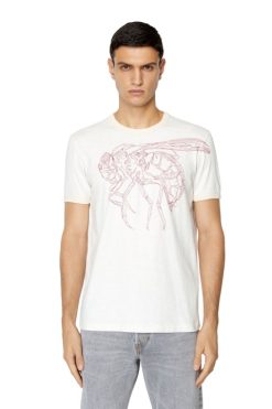 חולצת טריקו דקיקה לגברים עשויה מג’רזי כותנה מגע למישוש. סגנון שטיפת אבן זה רקום בעדינות עם גרפיקה של זבוב בחזית ולוגו דיסקרטי של ‘דיזל פליי-מרגל’ על הכתף האחורית.