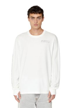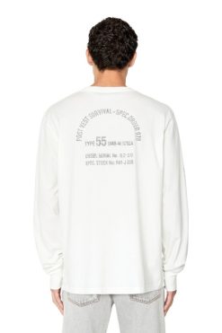 גזרת טי שירט לגברים להתאמה רגילה מג’רזי כותנה קלה. סגנון שרוול ארוך זה מודפס מבפנים עם מוטיבים של לוגו ‘דיזל סדרתי’ המדממים דרך החזית, ויוצרים אפקט דהוי.