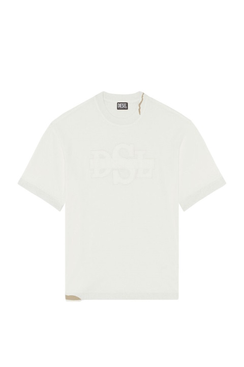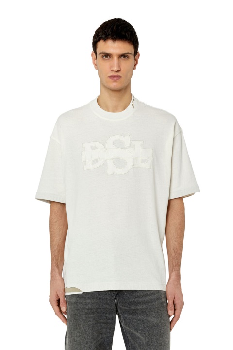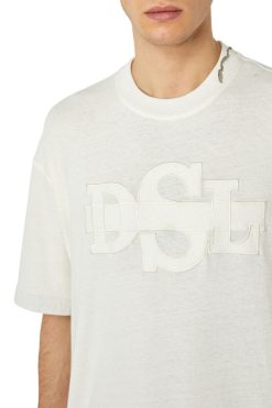 סווטשירט גברים בגזרה רופפת בנוי מג’רזי כותנה, ממותג עם טלאי DSL צמר גוני על החזה. קרעים בגזרות חושפים מבטאים מנוגדים של גרסי. סיים עם שטיפת אבן למראה דהוי.
