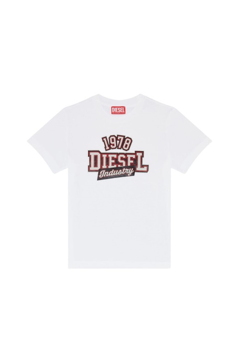 טי לבנים עשוי כותנה ג’רזי. מפורט עם הדפסה לוגו ‘1978 דיזל תעשיית’ נוסח קולג’ על החזה.