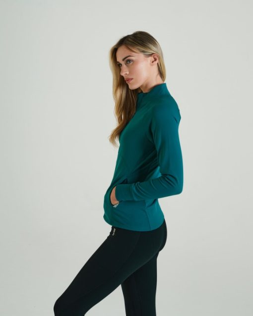 רוכסן מלא מחטב גוף עם כיסי צד סמויים ומיתוג גומי מוגבה.