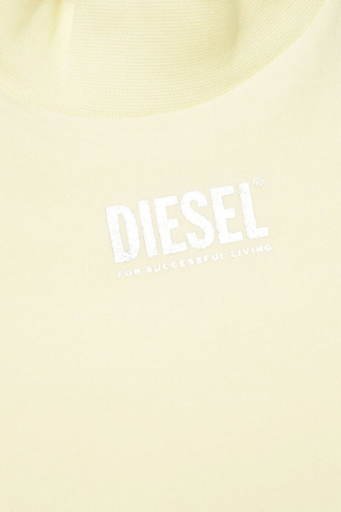 טי קצוץ לילדות עשוי מג’רזי כותנה טהורה. הגזרה הקופסתית שלו מתעדכנת עם צוואר דומה מצולע. מפורט עם לוגו כסף של Diesel For Successful Living על החזה ומודגש עם תפרים ניגודיים.