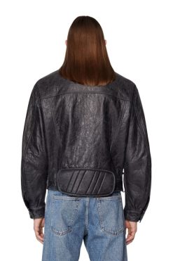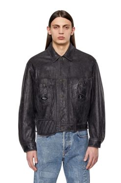 בהשראת פריט ארכיוני משנות ה-90, הז’קט נחתך מעור מרופד בשעווה קלות שטופל כדי להשיג מראה סדוק. צללית המשאיות מעודכנת עם לולאות חג שמנמנות בגודל גדול ותוספת תוספות לוגו ייחודיות בחזית.