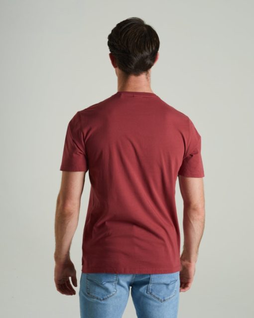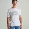 חולצת טריקו ג’רזי מכותנה לגברים עם יצירות אמנות מודפסות בדיו דיזל קלאסיות שלנו ותווית דגל ארוגה ליד המכפלת.