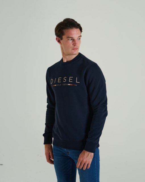 סווטשירט גברים מכותנה אורגנית. לוגו פרימיום דיזל רקום על החזה. שלב עם זוג הג’ינס המכובסים הכהים שלנו למראה קז’ואל חכם.