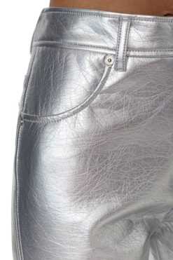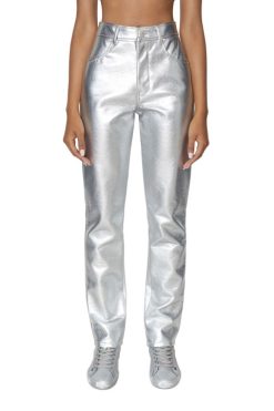 מכנסי ויניל אלו חתוכים להתאמה רגילה בפרופיל דומה לג’ינס עם חמישה כיסים. טיפול גימור מיוחד יוצר מרקם מקומט ייחודי הדומה לעור של פיל. סיום עם לוח לוגו ‘D’ בגב.