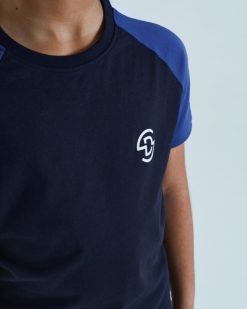 חולצת כתף ניגודית עם הדפסה לוגו על החזה